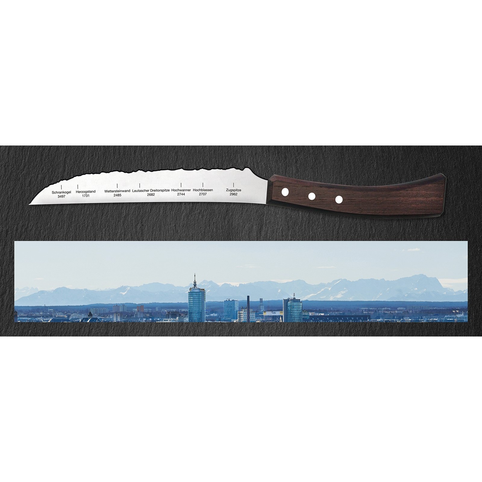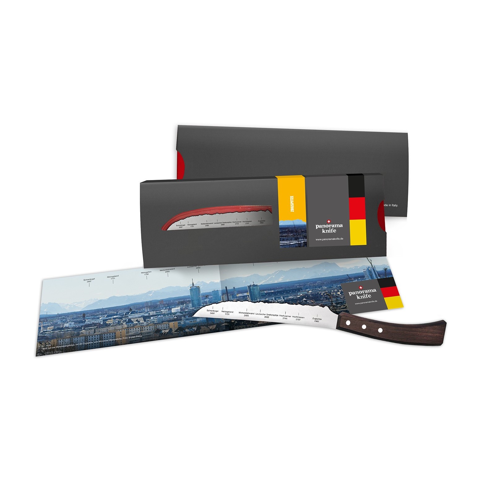 Die Zugspitze heisst so, weil sie vor tausenden Jahren mit einem Universalmesser modelliert wurde. Glauben Sie bitte nicht alles, was Sie im Internet lesen. Aber dass unser PanoramaKnife Universalmesser scharf ist, das dürfen Sie glauben.